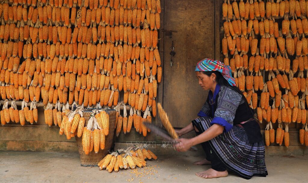 Corn is the main food stored and used for daily meals of the Mong people in the highlands. Photo: Tuan Anh - VNA