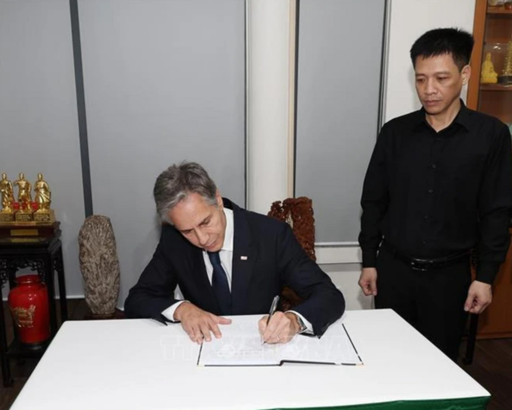 Meanwhile, Secretary Blinken described General Secretary Trong as a visionary leader who helped heal the wound of war and built bridges of peace and partnership between Vietnam and the United States, when he wrote in the condolence book at the late Party leader's house in Hanoi.