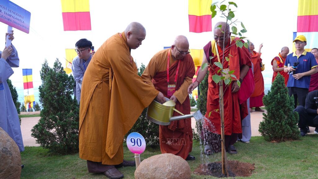 A ceremony was held in Ba Den Mountain National Tourist Site in the southern province of Tay Ninh on May 8 to pray for world peace and plant 108 Bodhi trees, which were provined from the sacred Bodh Gaya tree in India as part of the UN Day of Vesak Celebrations (Vesak 2025). VNA Photo