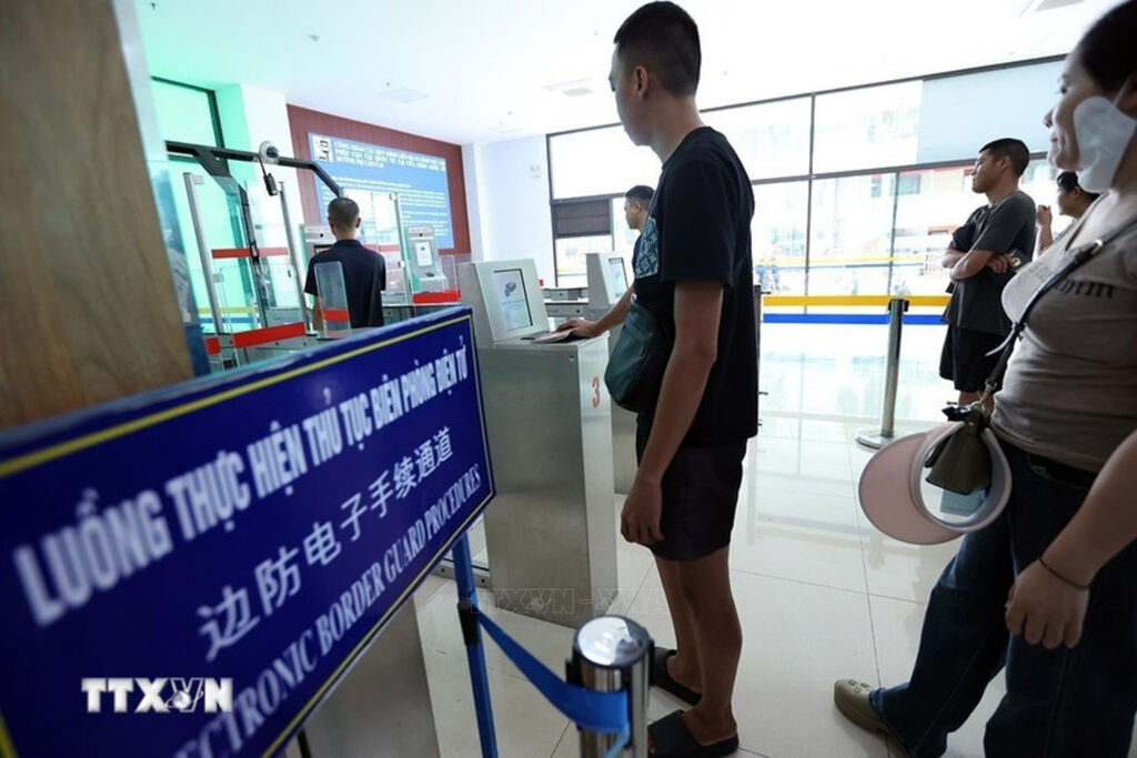 | People handle electronic border guard procedures at the Lao Cai International Border Gate, which is among the newly added entry points for e-visa holders. (Photo: VNA) |