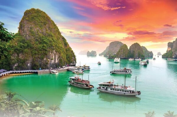Five Vietnamese athletes (Chau Tuyet Van, Hua Van Huy, Nguyen Ngoc Minh Hy, Tran Dang Khoa, and Nguyen Thi Le Kim) celebrate their gold in Freestyle Poomsae event, mixed team category. Photo: Minh Quyet – VNA