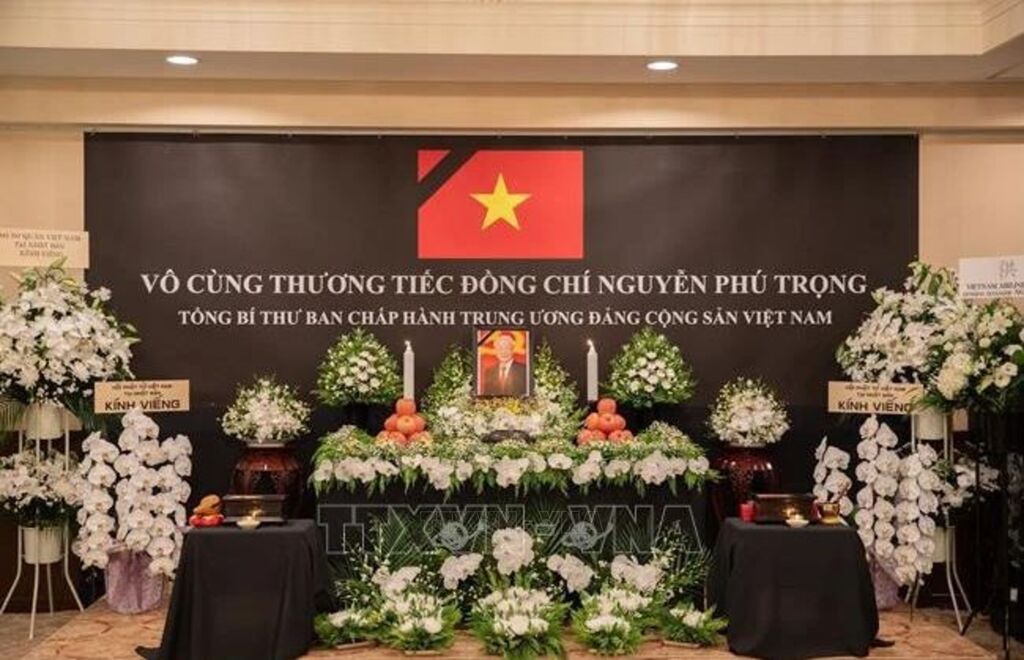 Beijing (VNA) – The Vietnamese embassies in China, Japan and India opened two-day respect-paying ceremonies and condolence books for Party General Secretary Nguyen Phu Trong on July 25.
