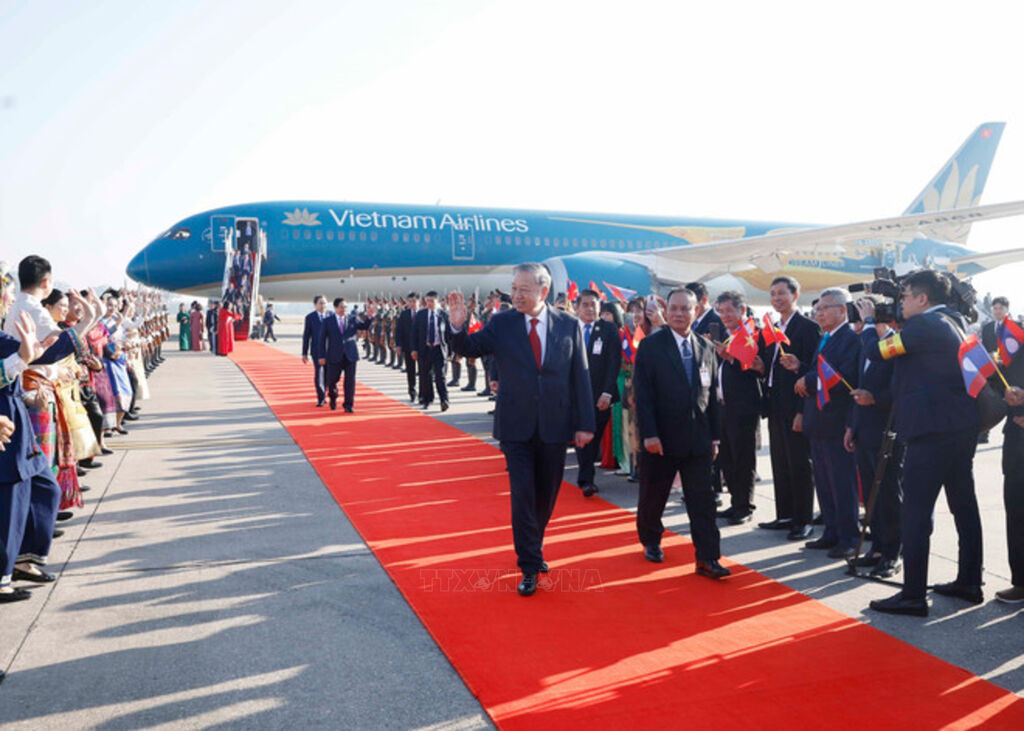 Vientiane (VNA) - General Secretary of the Communist Party of Vietnam Central Committee To Lam and a high-ranking Vietnamese delegation arrived at Wattay International Airport in Vientiane on February 5 morning, starting a state visit to Laos at the invitation of General Secretary of the Lao People’s Revolutionary Party (LPRP) Central Committee and President of Laos Thongloun Sisoulith.