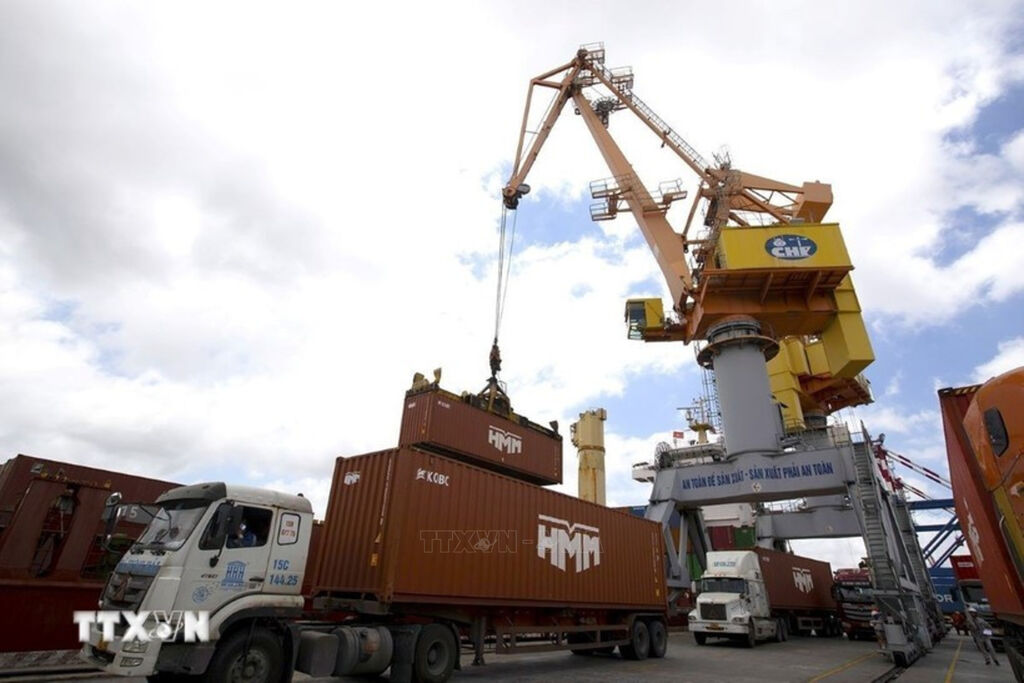 | Handling cargo at Tan Vu port in Hai Phong city (Photo: VNA) |
