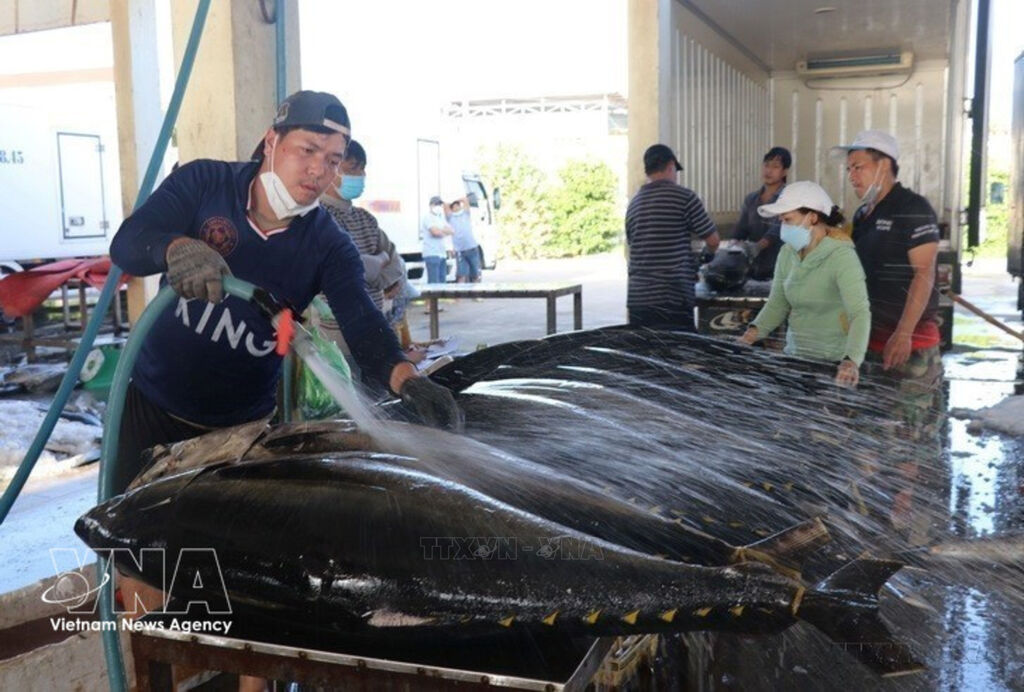 In 2021, Binh Dinh province (now Gia Lai province) had about 2,100 hectares of brackish-water shrimp farms, including 13 hectares applying advanced, high-quality technologies. (Photo: Nguyen Linh – VNA)Son Nguyet private seafood enterprise in Rang Dong township, Nghia Hung district, Ninh Binh province operates over 2 hectares of goby and grouper farms, producing more than 500 tonnes annually with revenue of around 60 billion VND. (Photo: Vu Sinh – VNA)Border guards in Quang Ngai province intensify inspections of nearshore fishing activities. (Photo: Pham Cuong – VNA)Fish are dried during export processing at Phuong Mai Co., Ltd., Nghe An province. The company exports to Thailand, Laos and other markets. (Photo: Danh Lam – VNA)Ocean tuna is pre-processed before cold storage at Tuy Hoa fishing port, Dak Lak province. (Photo: Pham Cuong – VNA)Squid fishing vessels operate in Vietnam’s Truong Sa (Spratly) waters. (Photo: Hong Ky – VNA)