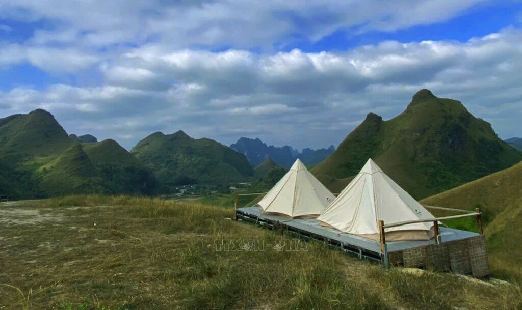 Ba Quang grass hills in Vinh Quy commune, Ha Lang district, the northern province of Cao Bang attracted many nature-loving tourists to enjoy the wild beauty of the place. In spring and summer, the grass hills are green and they turn a burnt yellow in winter. The beautiful natural scenery and fresh air have attracted many visitors to the locality. Photo: Quoc Dat – VNA