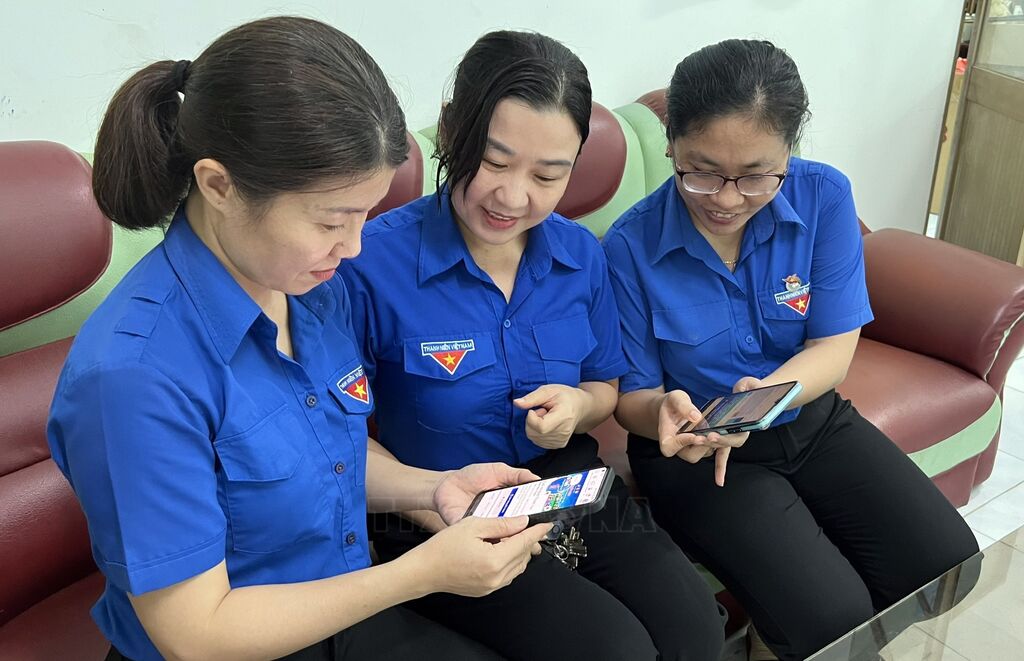 | Đoàn viên, thanh niên ở Ninh Thuận tìm hiểu nội dung thông tin trên trang Fanpage “Tuổi trẻ Ninh Thuận”. |