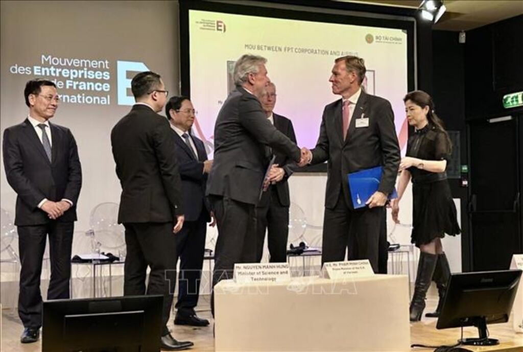 | Lãnh đạo FPT và lãnh đạo Tập đoàn Airbus trao Thỏa thuận Dịch vụ chính (MSA) tại Diễn đàn doanh nghiệp Việt Nam - Pháp. Ảnh: Thu Hà - PV TTXVN tại Pháp Lãnh đạo Tập đoàn FPT và Tạp đoàn Airbus trao Thỏa thuận Dịch vụ chính (MSA) tại Diễn đàn doanh nghiệp Việt Nam - Pháp. Ảnh : Thu Hà - PV TTXVN tại Pháp Lãnh đạo FPT và lãnh đạo Tập đoàn Airbus trao Thỏa thuận Dịch vụ chính (MSA) tại Diễn đàn doanh nghiệp Việt Nam - Pháp. Ảnh: Thu Hà - PV TTXVN tại Pháp |