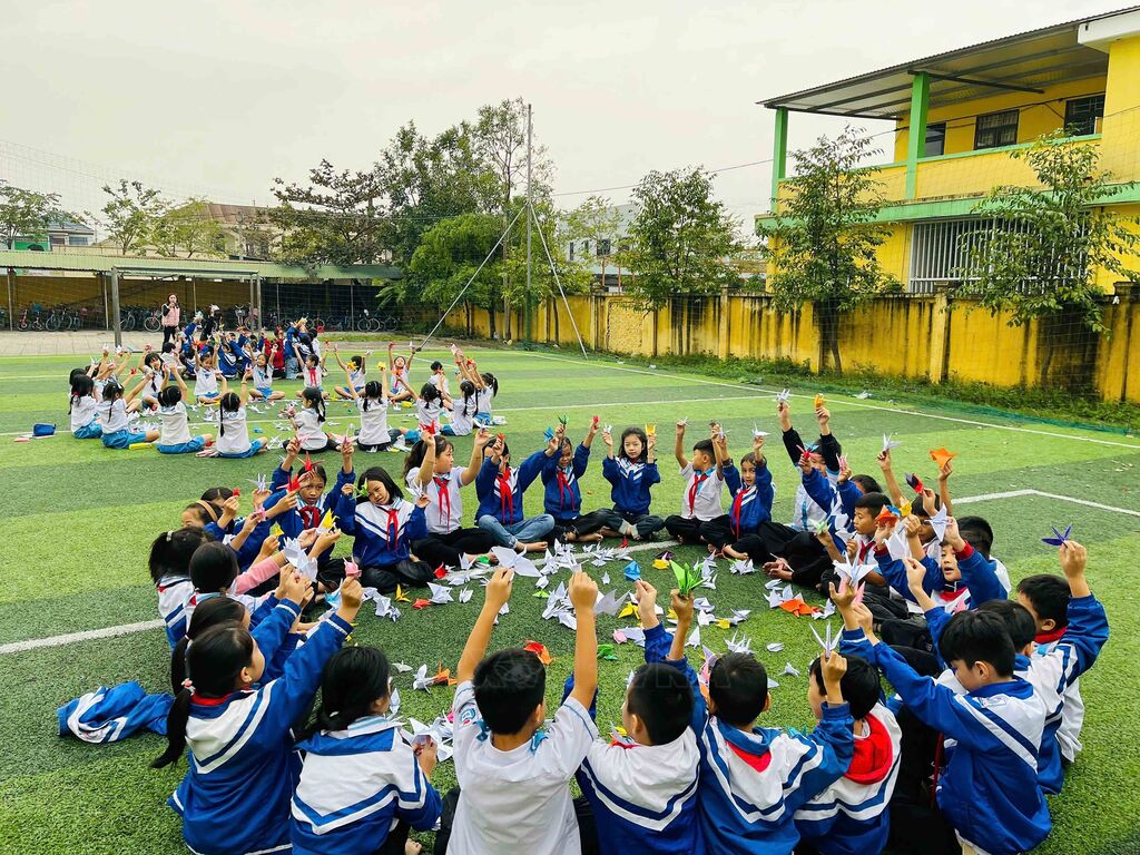 | Học sinh trường Tiểu học Thạch Hưng (thành phố Hà Tĩnh, tỉnh Hà Tĩnh) gấp hạc giấy để tri ân các Anh hùng liệt sĩ hy sinh trên Quần đảo Trường Sa. |