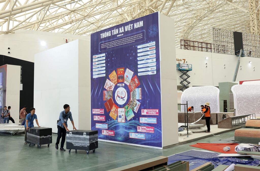 Gấp rút hoàn thiện các gian trưng bày trong Triển lãm kỷ niệm 80 năm Ngày Quốc khánh