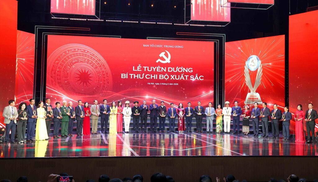 Kỷ niệm 96 năm Ngày thành lập Đảng Cộng sản Việt Nam, mừng Đảng, mừng Đất nước và chào đón Xuân mới Bính Ngọ 2026, tối 3/2, tại Nhà hát Hồ Gươm (Hà Nội), Ban Tổ chức Trung ương chủ trì, phối hợp với Tạp chí Cộng sản, Báo Nhân Dân, Đài Truyền hình Việt Nam, Hội Nhà báo Việt Nam tổ chức Lễ tuyên dương Bí thư Chi bộ xuất sắc và trao Giải báo chí toàn quốc về xây dựng Đảng - giải Búa liềm Vàng lần thứ X.