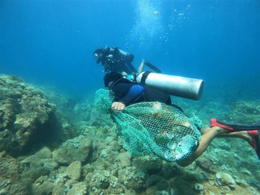 | Thu gom rác thải nhựa dưới biển xã đảo Nhơn Hải, thành phố Quy Nhơn, Bình Định. |