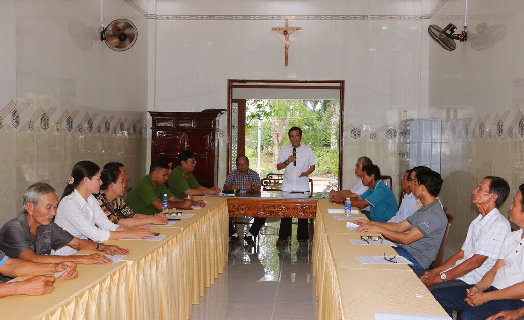 | Linh mục Nguyễn Việt Hồng, Chánh sở họ đạo Trà Cú phát biểu tại cuộc họp thường lệ mô hình họ đạo tự phòng, tự quản. |