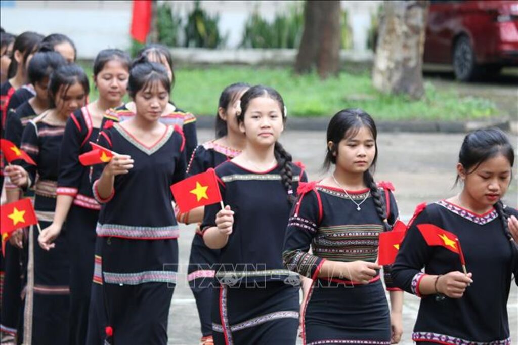| Trang phục truyền thống của người Bahnar tại tỉnh Kon Tum thường được thế hệ trẻ mặc vào những dịp đặc biệt như lễ hội hoặc trong trường học. |