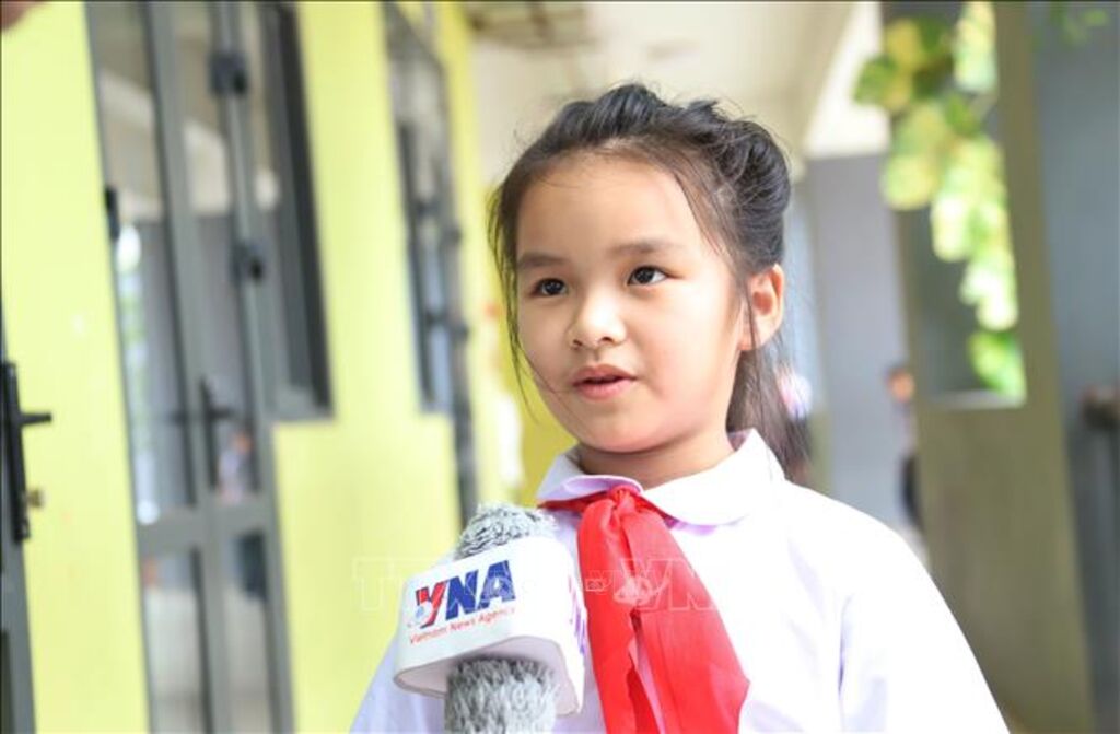 | Em Nguyễn Bùi Diễm My, học sinh trường Phổ thông Hữu nghị Lào - Việt Nam tỉnh Savannakhet chia sẻ mong muốn học giỏi môn tiếng Việt. Ảnh: Xuân Tú - PV TTXVN tại Lào |