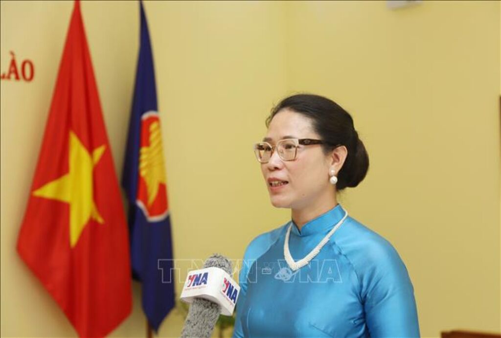 | Bà Đặng Thị Hải Tâm, Tổng Lãnh sự Việt Nam tại tỉnh Savannakhet, trả lời phỏng vấn phóng viên TTXVN. Ảnh: Xuân Tú - PV TTXVN tại Lào |