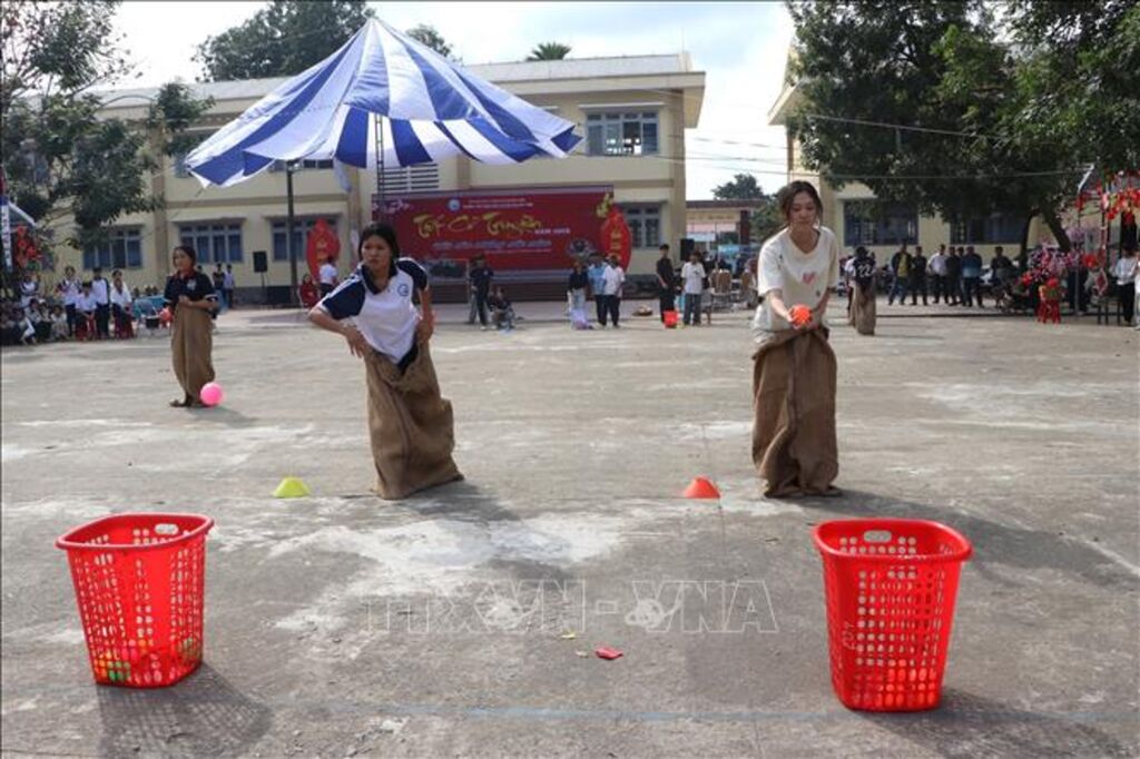Ngày hội Tết cổ truyền năm nay với chủ đề “Tết của những sắc màu” không chỉ đơn thuần là hoạt động ngoại khóa mà trở thành một không gian văn hóa thực thụ. Tại đây, các em học sinh được đắm mình trong những hoạt động trải nghiệm ý nghĩa: Từ gói bánh chưng, gói bánh lá đót, nấu các món ngon truyền thống đến tham gia các trò chơi dân gian như: Đánh cồng chiêng, đi cà kheo, đốt lửa trại....