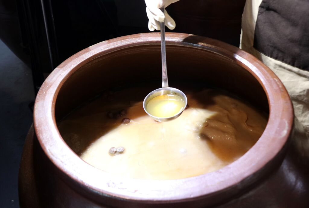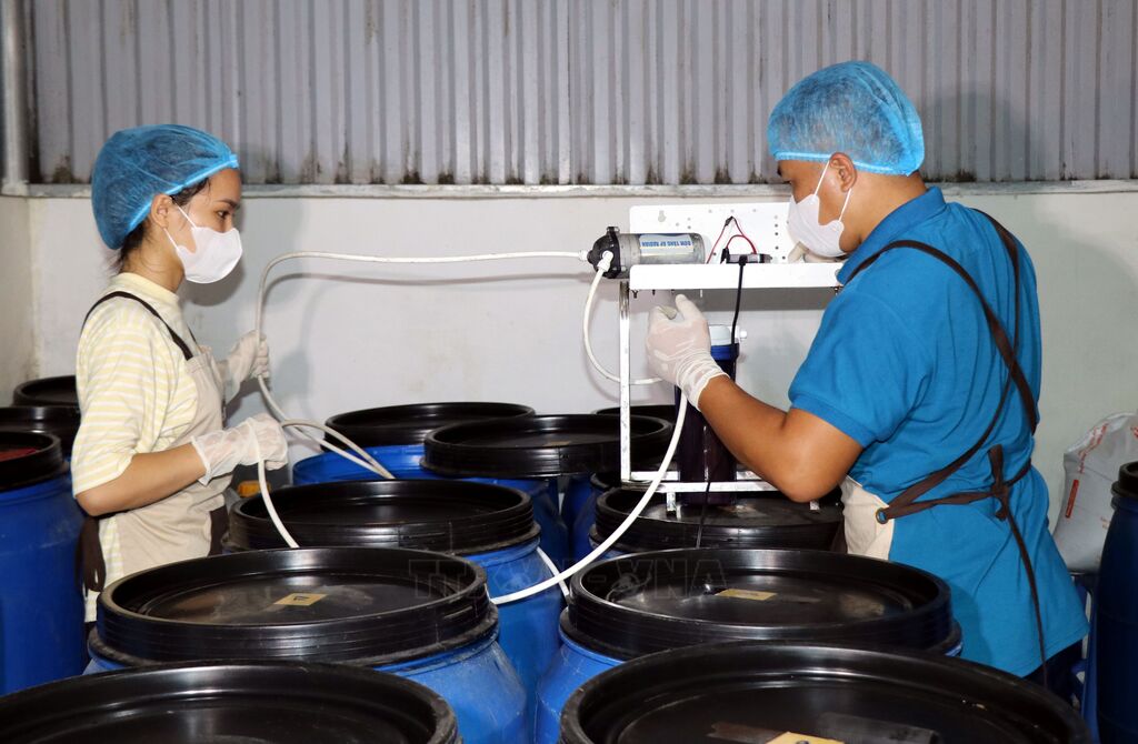 | Anh Vũ Minh Ngọc kiểm tra quá trình lên men của giấm. |