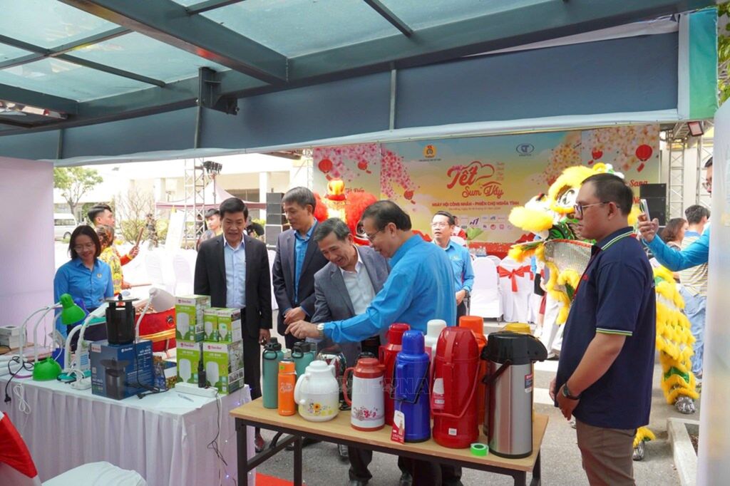 | Công đoàn Dệt May Việt Nam và Tập đoàn Dệt May Việt Nam đã tổ chức Chương trình Tết sum vầy - Ngày hội Công nhân - Phiên chợ nghĩa tình khu vực Đà Nẵng tại Tổng Công ty CP Dệt May Hoà Thọ. Ảnh: Hà Trần |