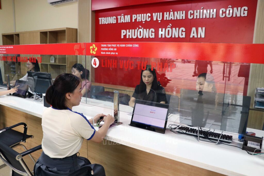 | Người dân đến làm thủ tục tại Trung tâm hành chính công phường Hồng An, thành phố Hải Phòng. |