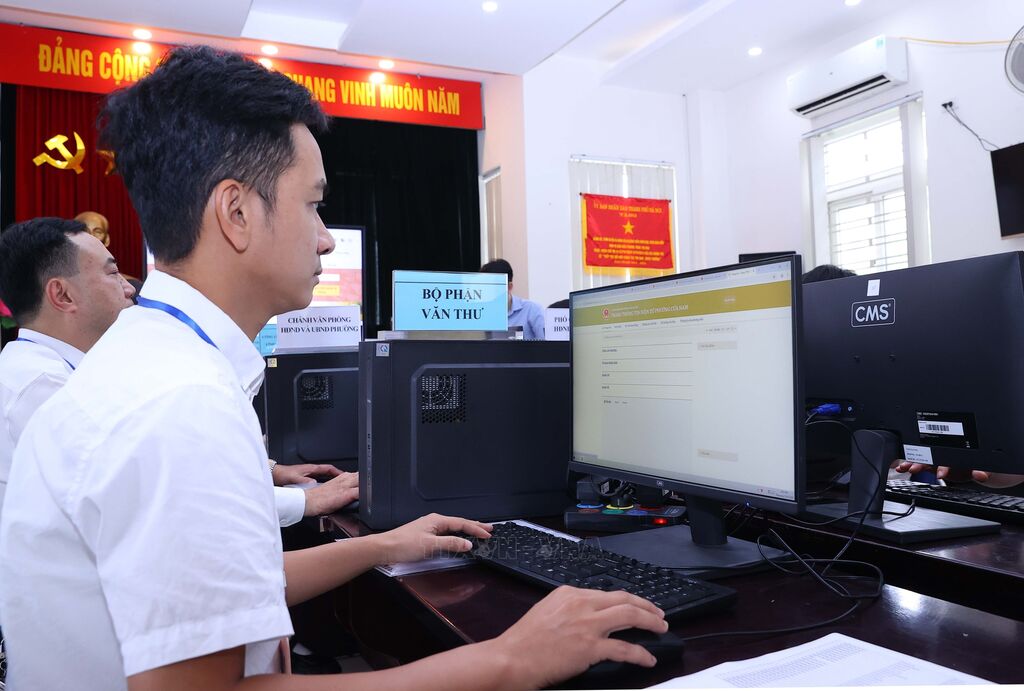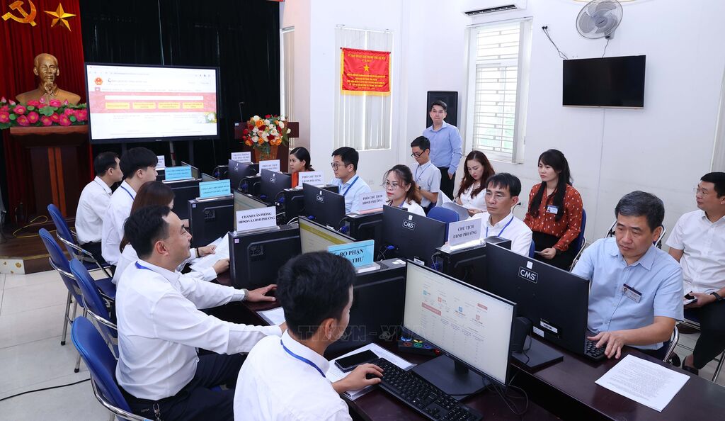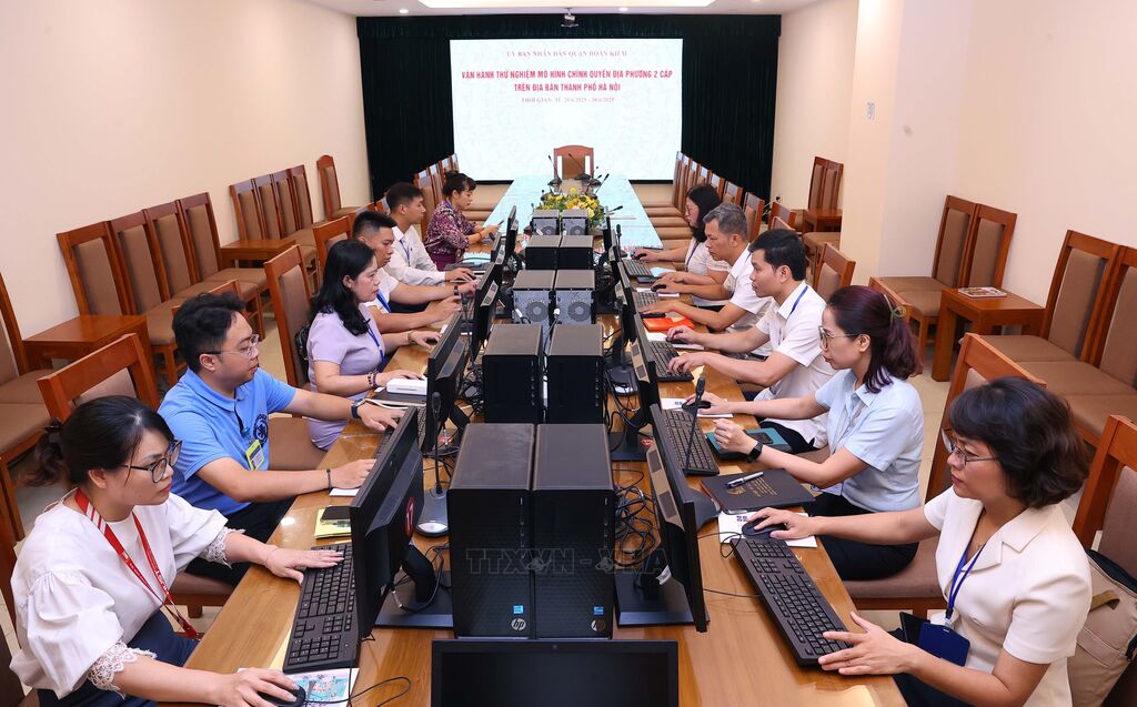 Sáng 20/6/2025, Thành phố Hà Nội bắt đầu vận hành thử nghiệm mô hình chính quyền địa phương 2 cấp trên địa bàn nhằm đánh giá hiệu quả mô hình với 10 nhóm nội dung cùng nhiều tình huống giả định để bảo đảm hoạt động thống nhất từ ngày 1/7. Ảnh: Văn Điệp - TTXVN