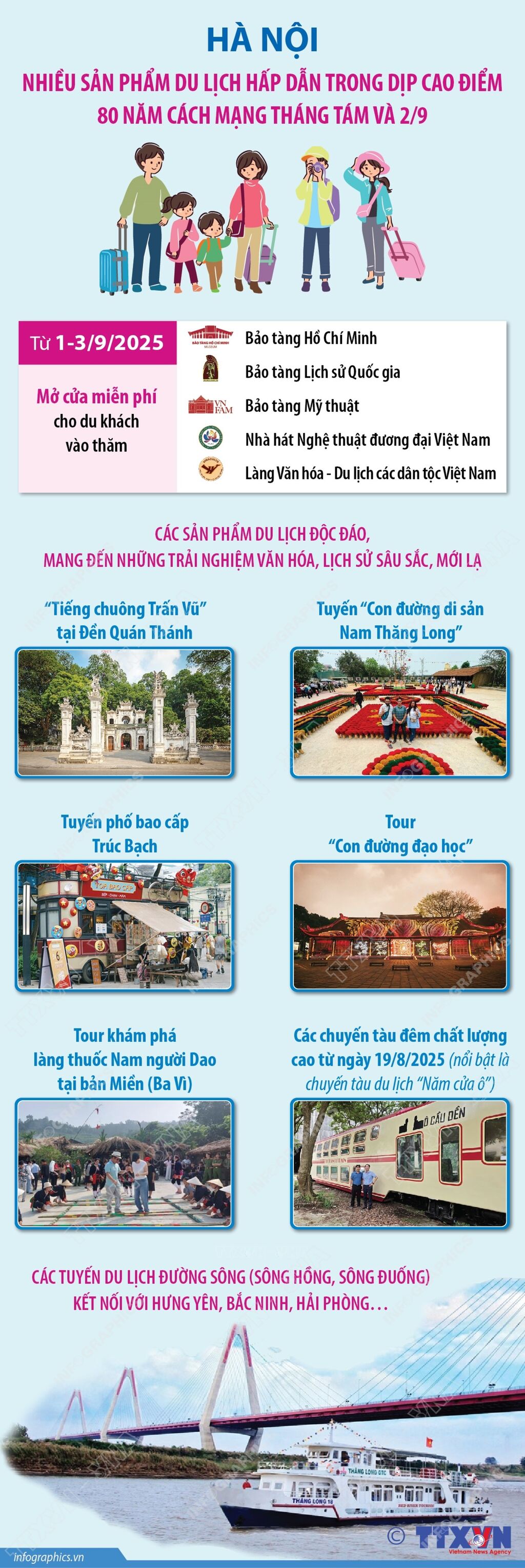 Hà Nội: Nhiều sản phẩm du lịch hấp dẫn trong dịp cao điểm 80 năm Cách mạng Tháng Tám và 2/9