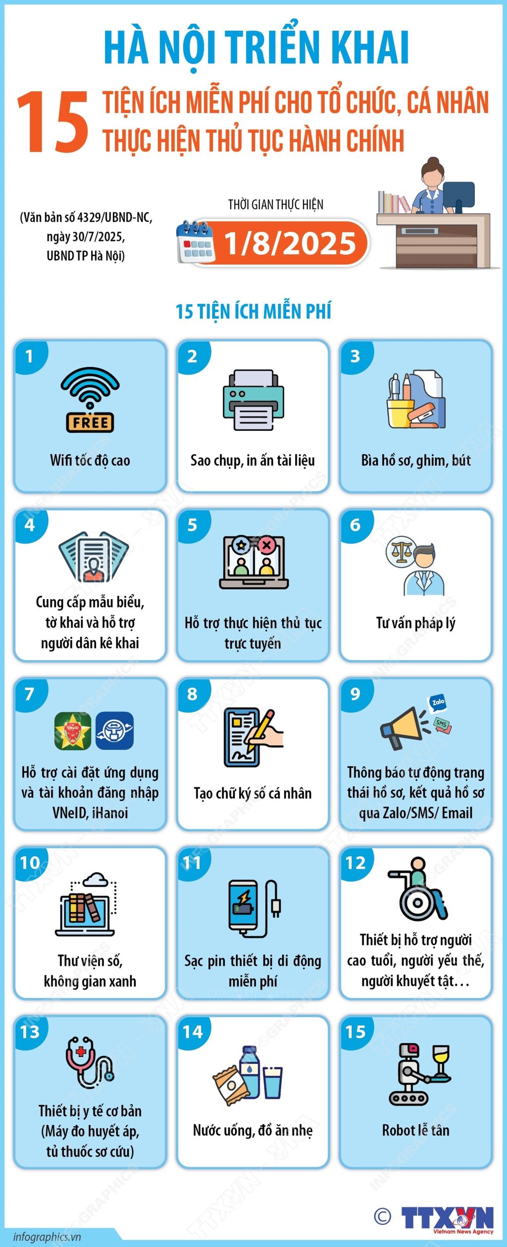 | Hà Nội triển khai 15 tiện ích miễn phí cho tổ chức, cá nhân thực hiện thủ tục hành chính |