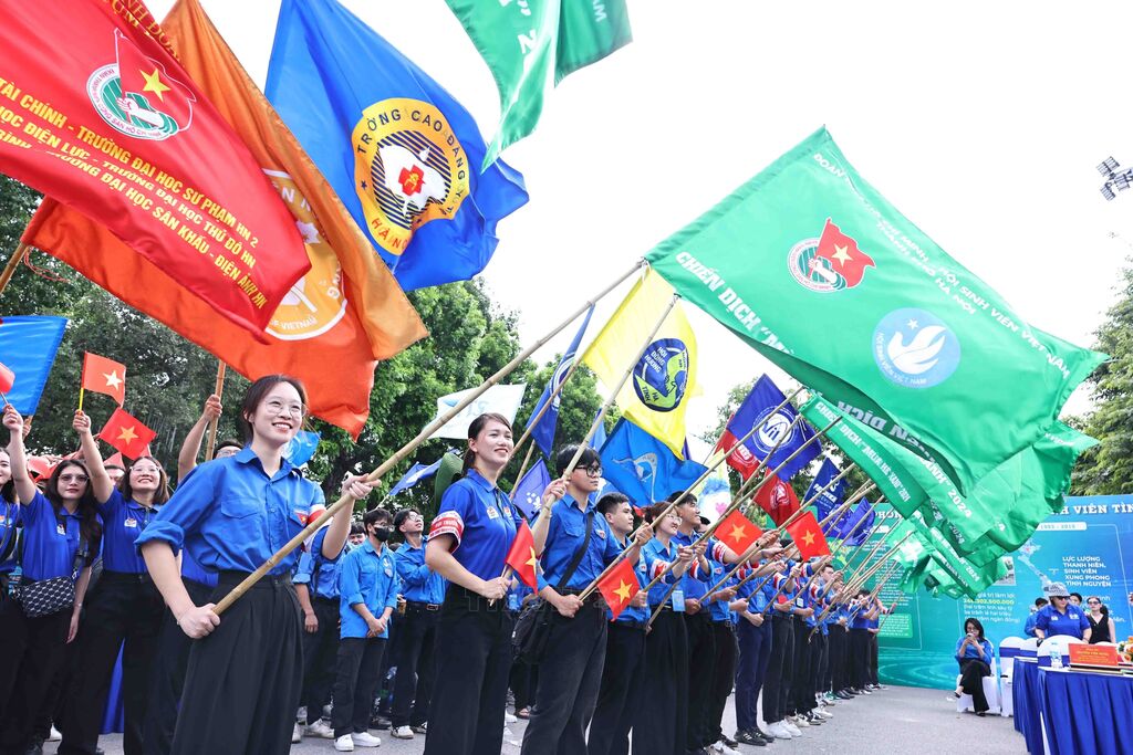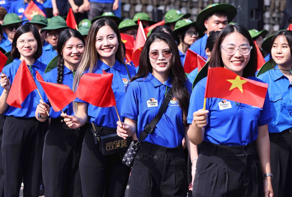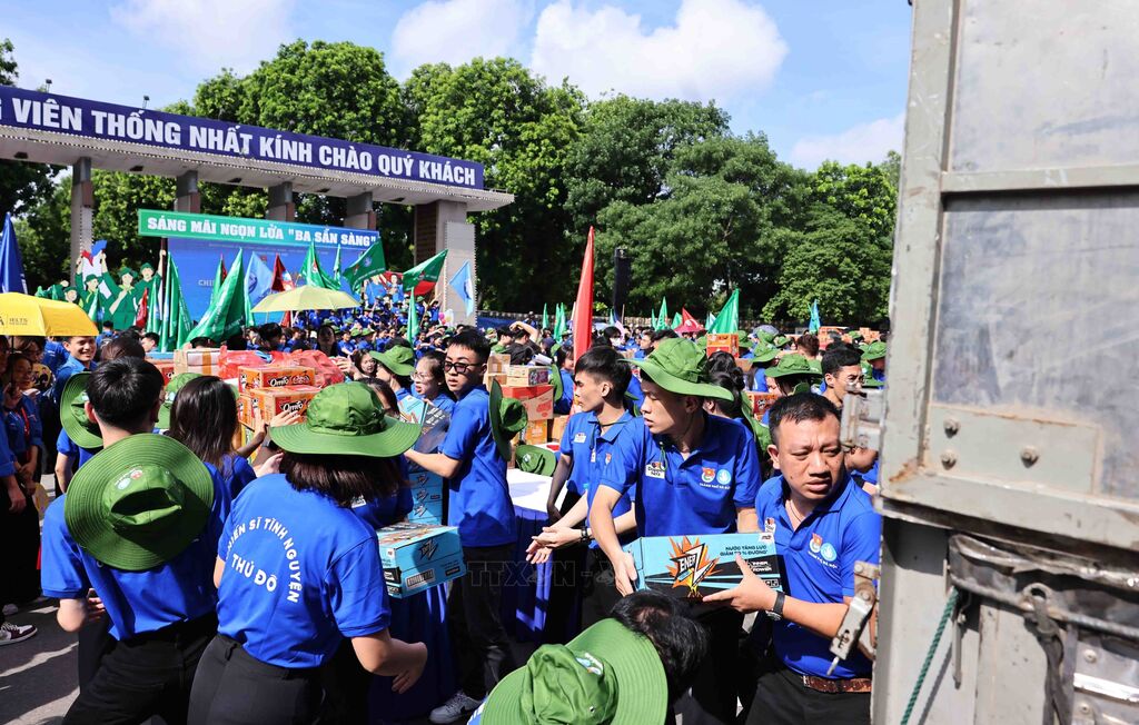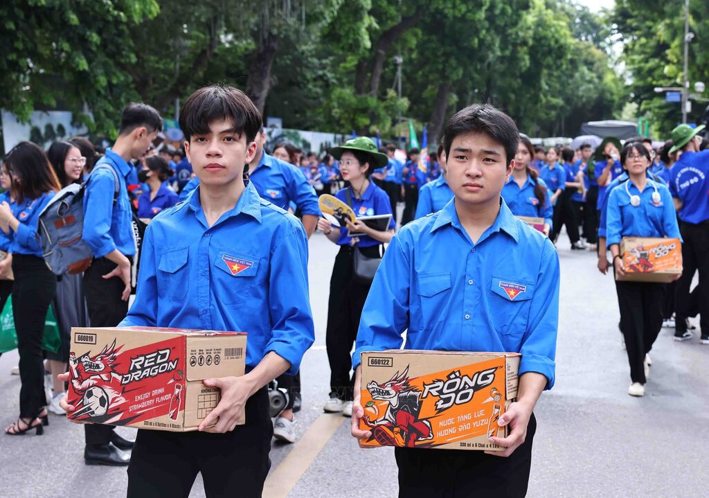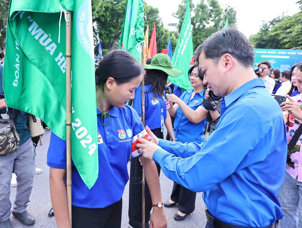 Sáng 6/7/2024, Thành đoàn - Hội Sinh viên thành phố Hà Nội tổ chức Lễ xuất quân Chiến dịch Sinh viên tình nguyện “Mùa Hè xanh” 2024 - Sáng mãi ngọn lửa “Ba sẵn sàng”. Ngay sau lễ xuất quân, các đội hình sinh viên tình nguyện xuất phát đến thẳng các tỉnh, thành, các địa bàn mà đội hình hoạt động. Ảnh: Minh Đức – TTXVN