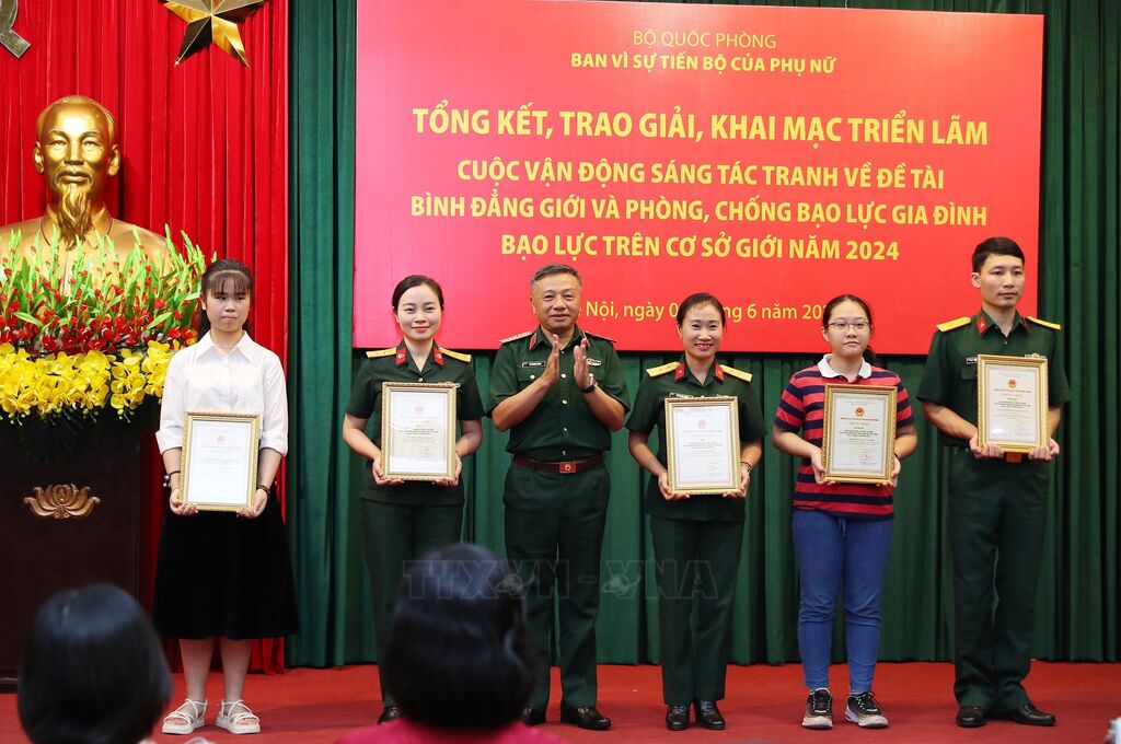 Chiều 4/6, tại Hà Nội, Ban Vì sự tiến bộ của phụ nữ (Bộ Quốc phòng) tổ chức tổng kết, trao giải, khai mạc triển lãm các tác phẩm xuất sắc tham gia Cuộc vận động Sáng tác tranh về đề tài bình đẳng giới và phòng, chống bạo lực gia đình, bạo lực trên cơ sở giới năm 2024.