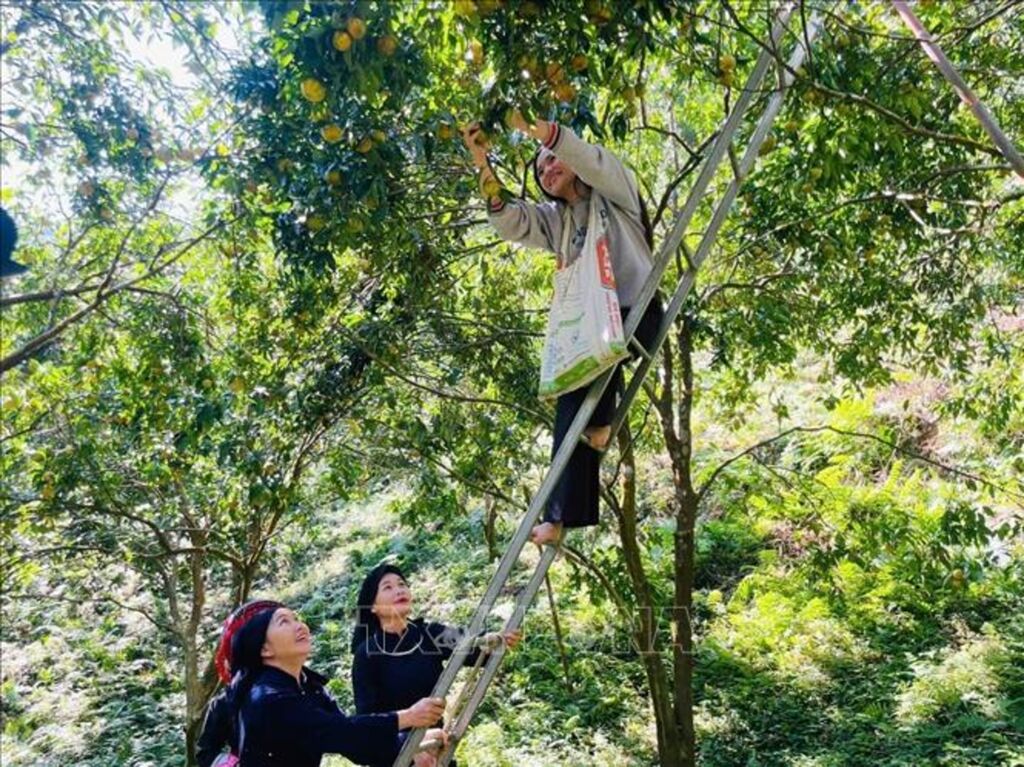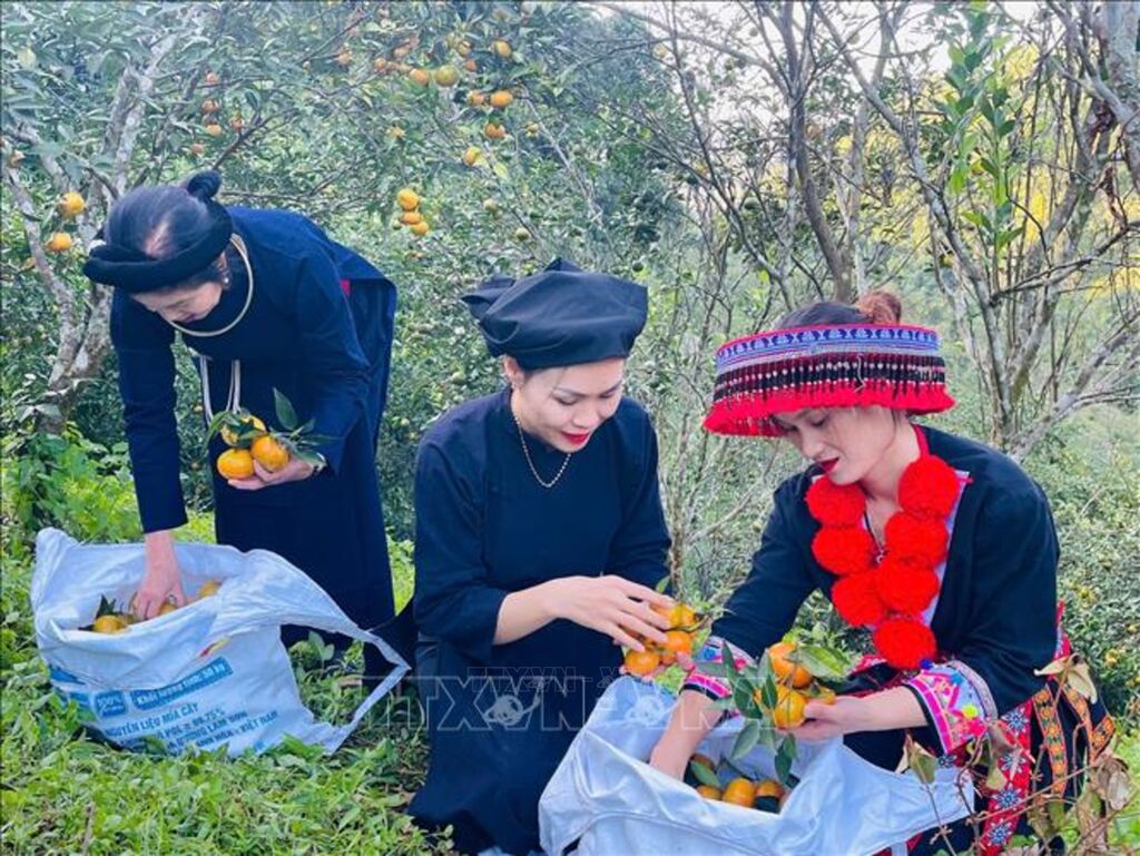 | Bà con xã Bạch Thông, tỉnh Thái Nguyên thu hoạch quýt |