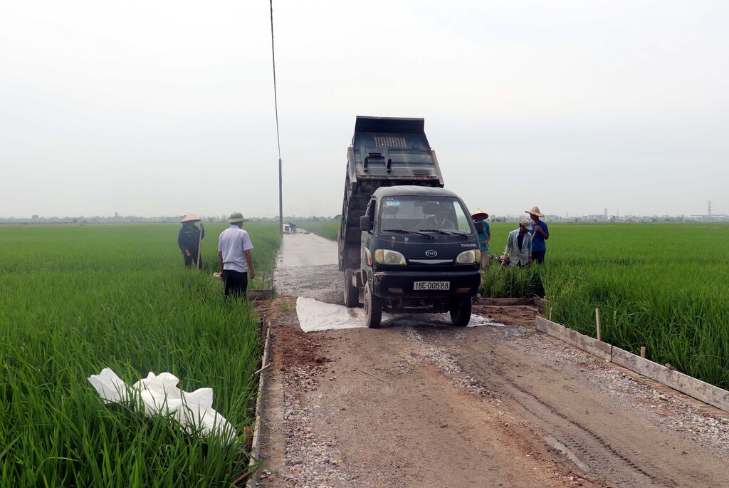 | Thi công đường bê tông nội đồng ở xã Vũ An (Kiến Xương, Thái Bình). |
