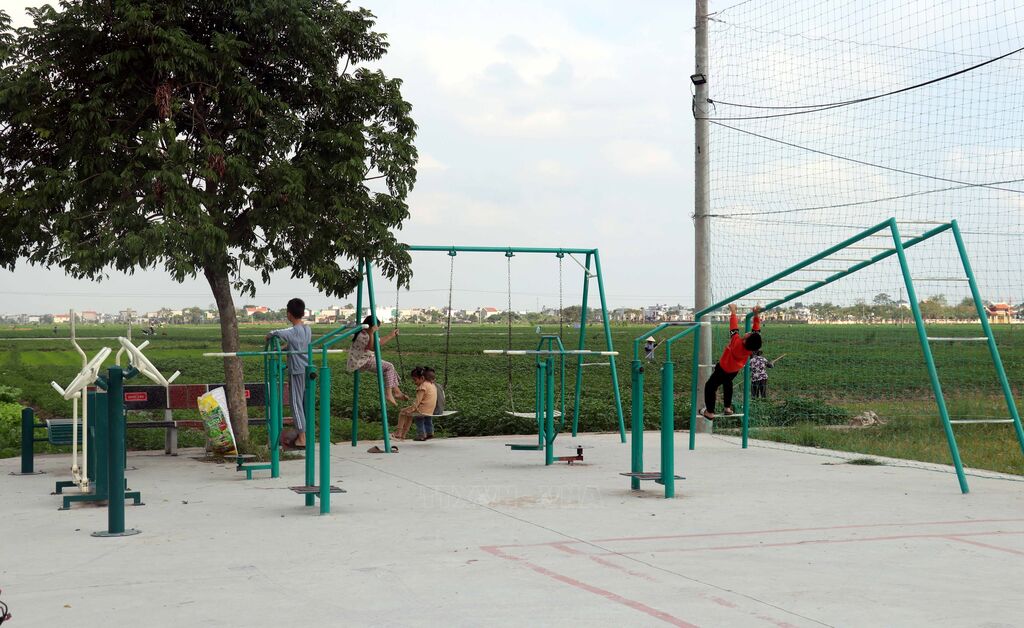 | Trẻ em vui chơi trong khuôn viên khu giải trí mới được đầu tư xây dựng ở xã Vũ An. |
