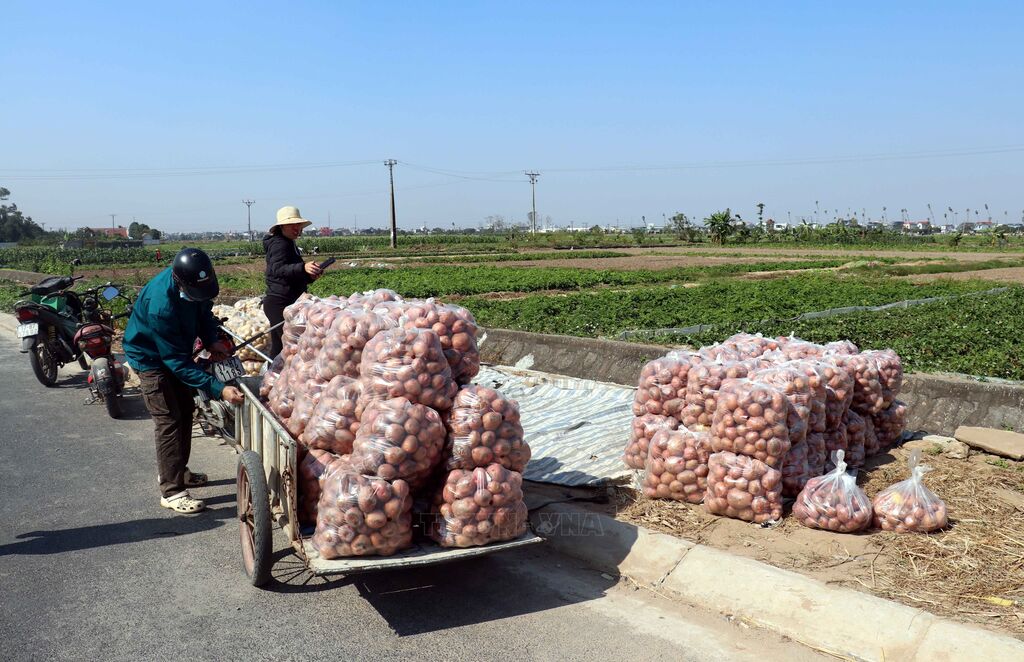 | Người dân xã Vũ An thu hoạch khoai tây vụ đông. |