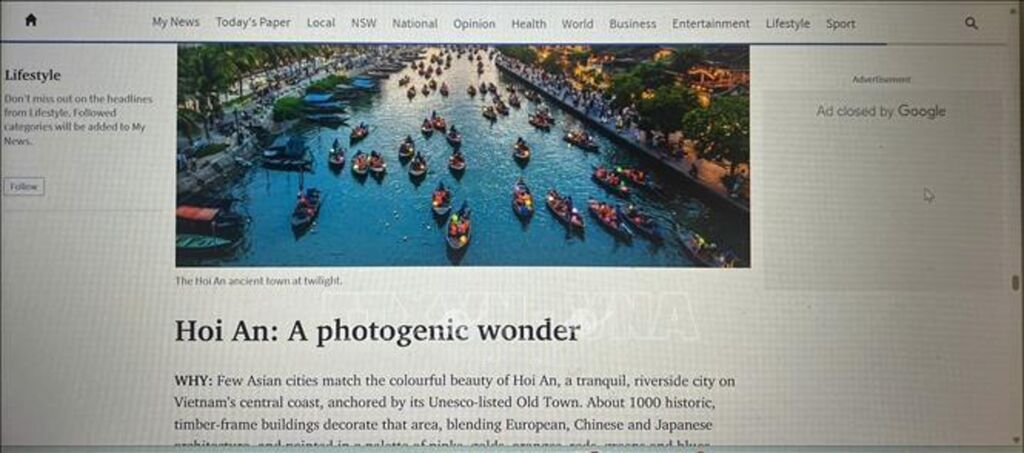 | Nhà báo O’Connell cho rằng rất ít thành phố châu Á nào sánh được với vẻ đẹp đầy màu sắc của Hội An. Ảnh: chụp từ màn hình trang báo |