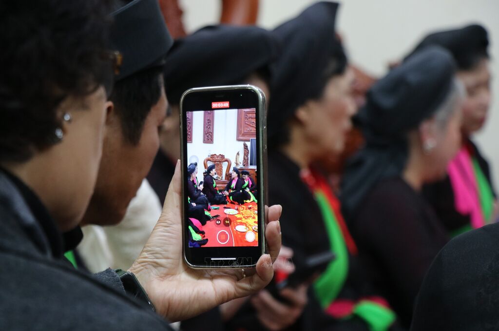 Hát canh Quan họ, tục hát cổ nhất, là hình thức diễn xướng độc đáo nhất của sinh hoạt văn hóa Quan họ, hội tụ những giá trị tinh túy của Dân ca Quan họ Bắc Ninh. Nét đặc trưng của hát canh Quan họ là các liền anh, liền chị ngồi chiếu hát đối đáp. Người hát không cần loa, không nhạc nhưng giọng hát chậm rãi, vang, rền, nền, nảy làm xao động lòng người. Canh quan họ chỉ kết thúc khi hai bên hết câu đối đáp và bên trai không giữ được bên gái ra về. Người Bắc Ninh với tâm hồn dân dã đầy nhiệt huyết đang ngày ngày lưu giữ những làn điệu Quan họ - Di sản văn hoá phi vật thể đại diện của nhân loại để lan toả văn hoá và truyền dạy cho thế hệ tương lai. Ảnh: TTXVN