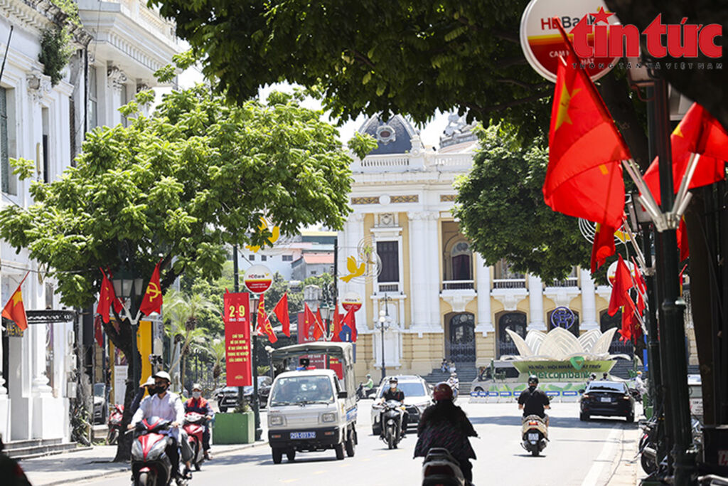 | Phố Tràng Tiền rực rỡ cờ hoa trước ngày Quốc khánh. |