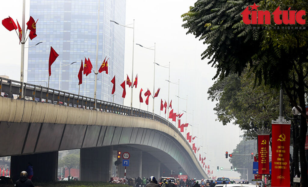 | Cờ Tổ quốc, cờ Đảng được treo trên cầu vượt Nguyễn Chí Thanh. |