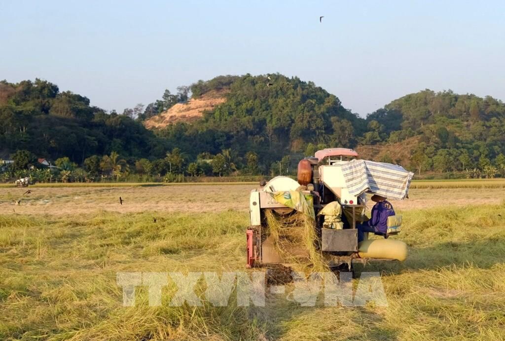 | Cánh đồng nếp Quýt đặc sản Đạ Tẻh áp dụng cơ giới hóa hầu hết các khâu sản xuất. Ảnh: TTXVN phát |