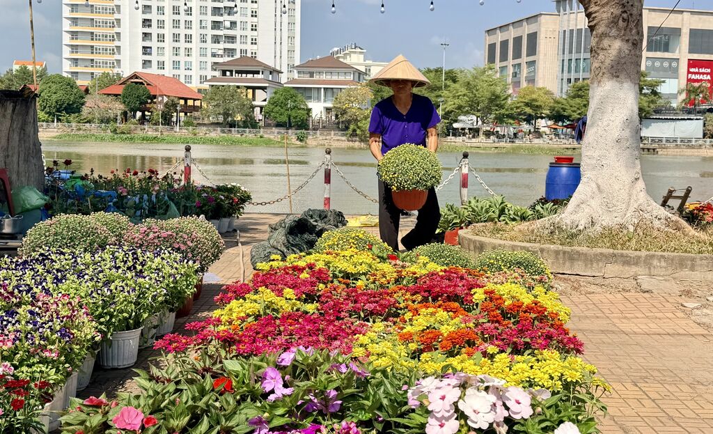 Những ngày cận Tết Nguyên đán 2026, nhiều nhà vườn ở An Giang, Đồng Tháp đưa hàng trăm loại hoa, mai vàng xuống phố để phục vụ người dân An Giang mua hoa trưng Tết sớm. Tại chợ hoa xuân phường Long Xuyên, hàng trăm gian hàng bày bán đa dạng các loại hoa, cây kiểng, thu hút đông đảo người dân đến tham quan, mua sắm. Ảnh: Thanh Sang-TTXVN