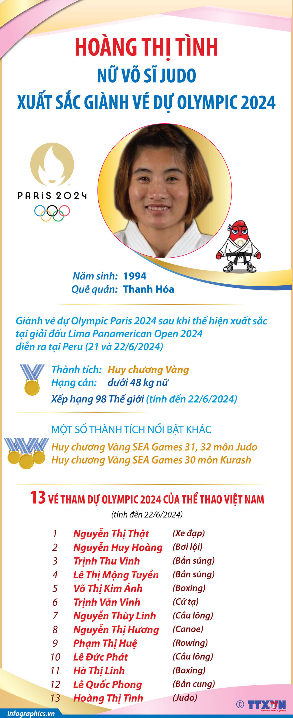 Tính đến ngày 22/6/2024, thể thao Việt Nam có 13 vé chính thức tham dự Olympic Paris 2024.