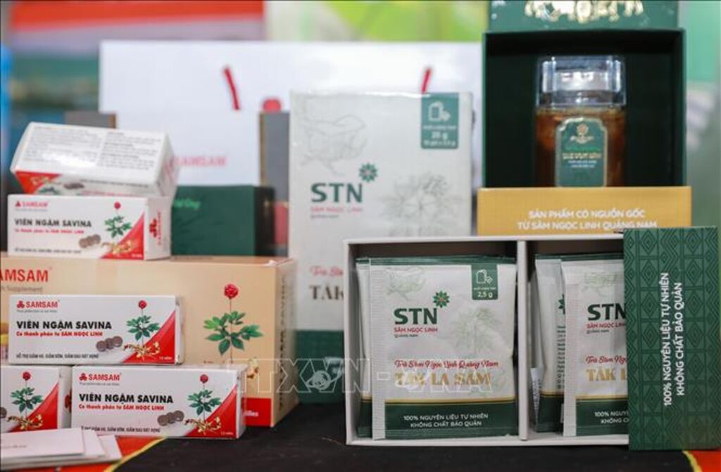 | Sản phẩm sạch có nguồn gốc thiên nhiên từ núi rừng Tây Nguyên tại Hội chợ mùa Thu thu hút đông đảo du khách. |