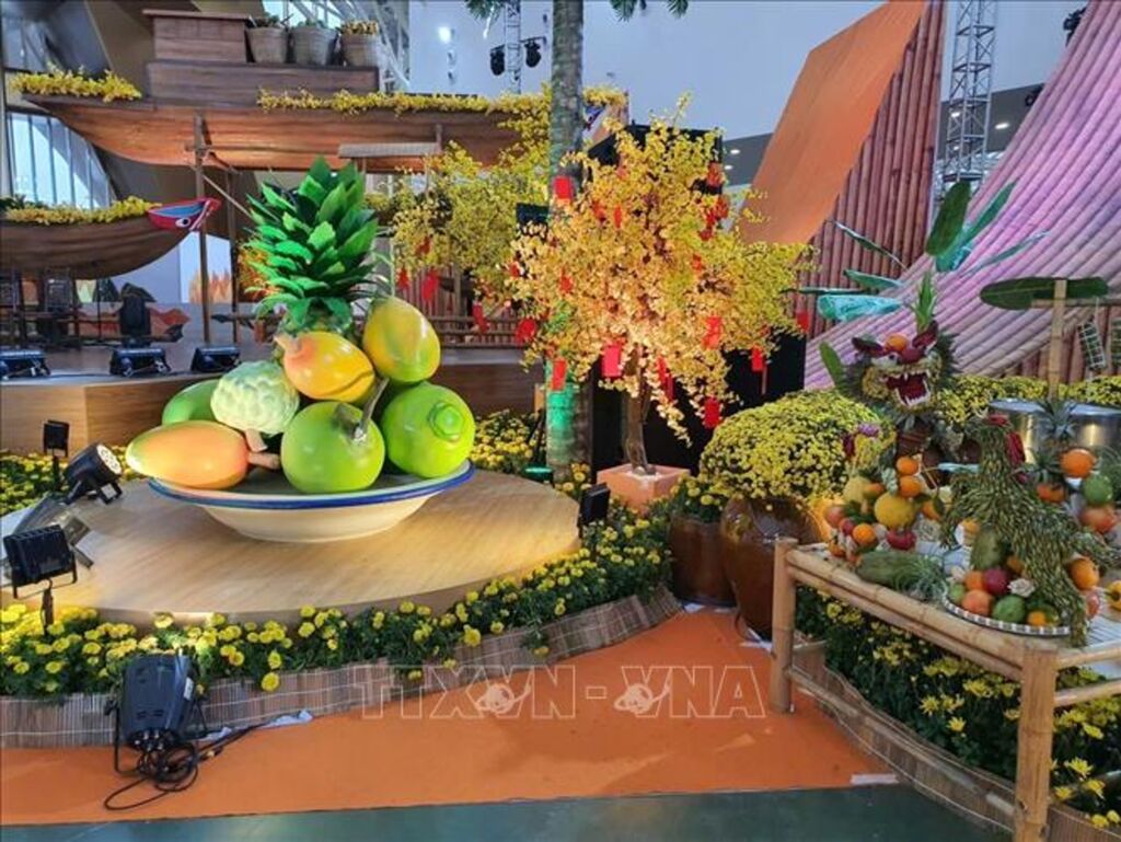 | Hoa, quả ngày Tết trong không gian trưng bày của Thành phố Hồ Chí Minh tại Hội chợ mùa Xuân. |