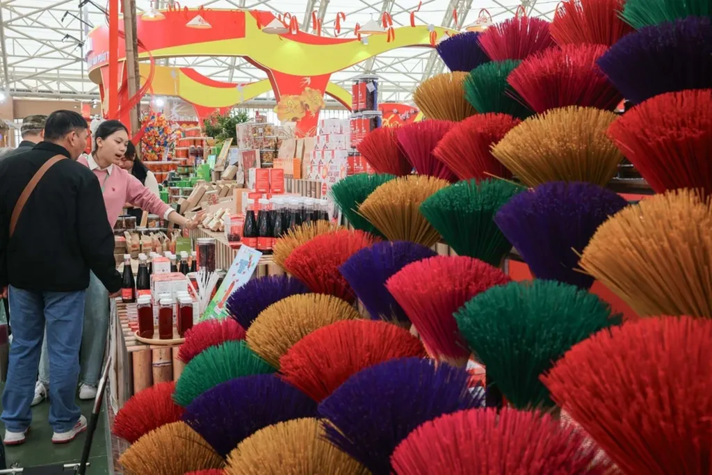 | Gian hàng trưng bày nhiều sản phẩm thủ công cổ truyền nổi tiếng từ các làng làm hương truyền thống của Huế. |