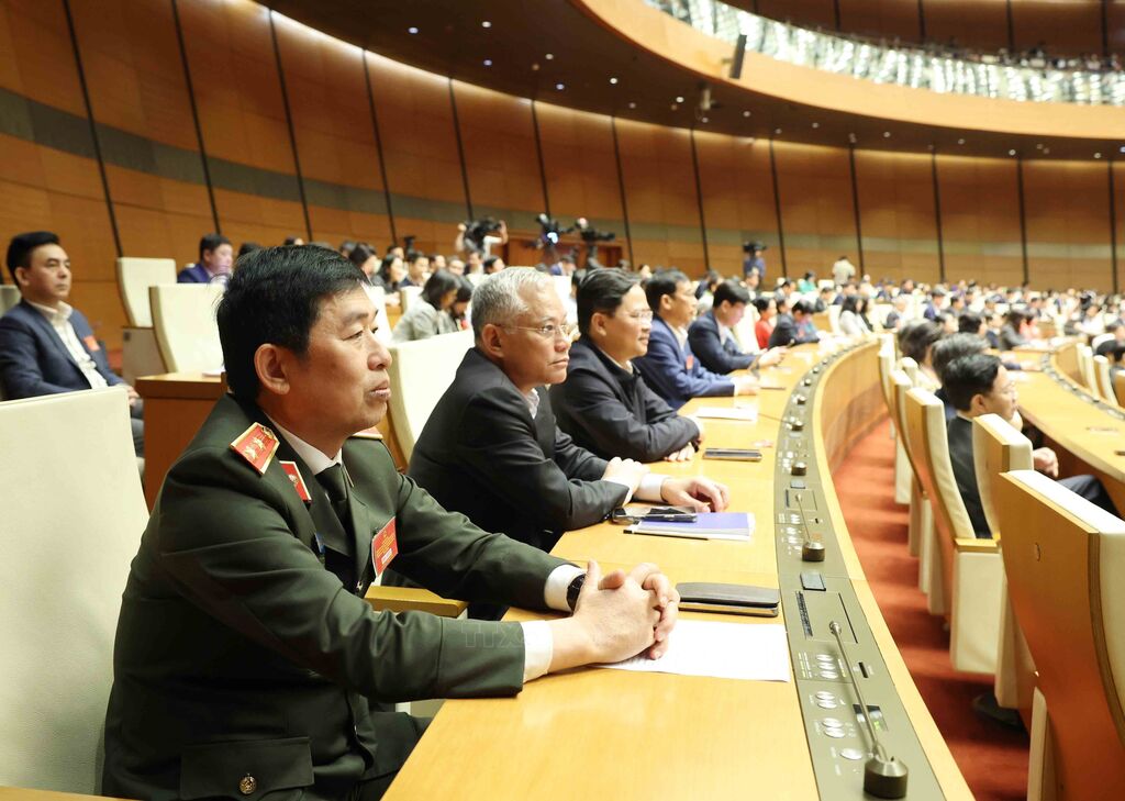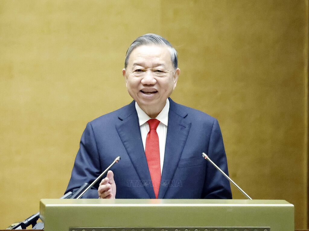 Sáng 25/2/2026, tại Hội trường Diên Hồng, Nhà Quốc hội, Ban Bí thư tổ chức Hội nghị toàn quốc nghiên cứu, học tập, quán triệt và triển khai thực hiện Nghị quyết số 79-NQ/TW về phát triển kinh tế Nhà nước và Nghị quyết số 80-NQ/TW về phát triển văn hóa Việt Nam của Bộ Chính trị. Hội nghị được tổ chức theo hình thức trực tiếp và kết nối trực tuyến đến điểm cầu các tỉnh ủy, thành ủy, đảng ủy trực thuộc Trung ương, điểm cầu các ban, bộ, ngành, cơ quan Trung ương, các cơ quan, đơn vị. Tổng Bí thư Tô Lâm dự hội nghị. Ảnh: TTXVN