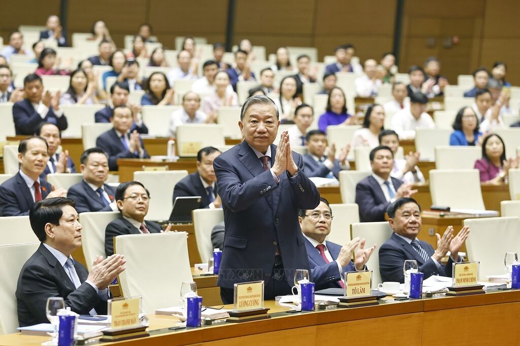 Chiều 31/3/2026, Hội đồng bầu cử quốc gia tổ chức Hội nghị trực tuyến toàn quốc tổng kết công tác bầu cử đại biểu Quốc hội khóa XVI và đại biểu Hội đồng nhân dân các cấp nhiệm kỳ 2026 - 2031. Tổng Bí thư Tô Lâm và các đồng chí lãnh đạo Đảng, Nhà nước dự Hội nghị tại điểm cầu chính Nhà Quốc hội (Hà Nội). Ảnh: Doãn Tấn - TTXVN
