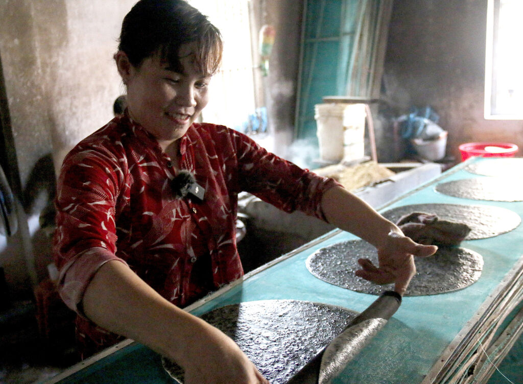 | Sản xuất bánh tráng tại Làng nghề bánh tráng Phú Long, phường Hàm Thắng (Lâm Đồng). |