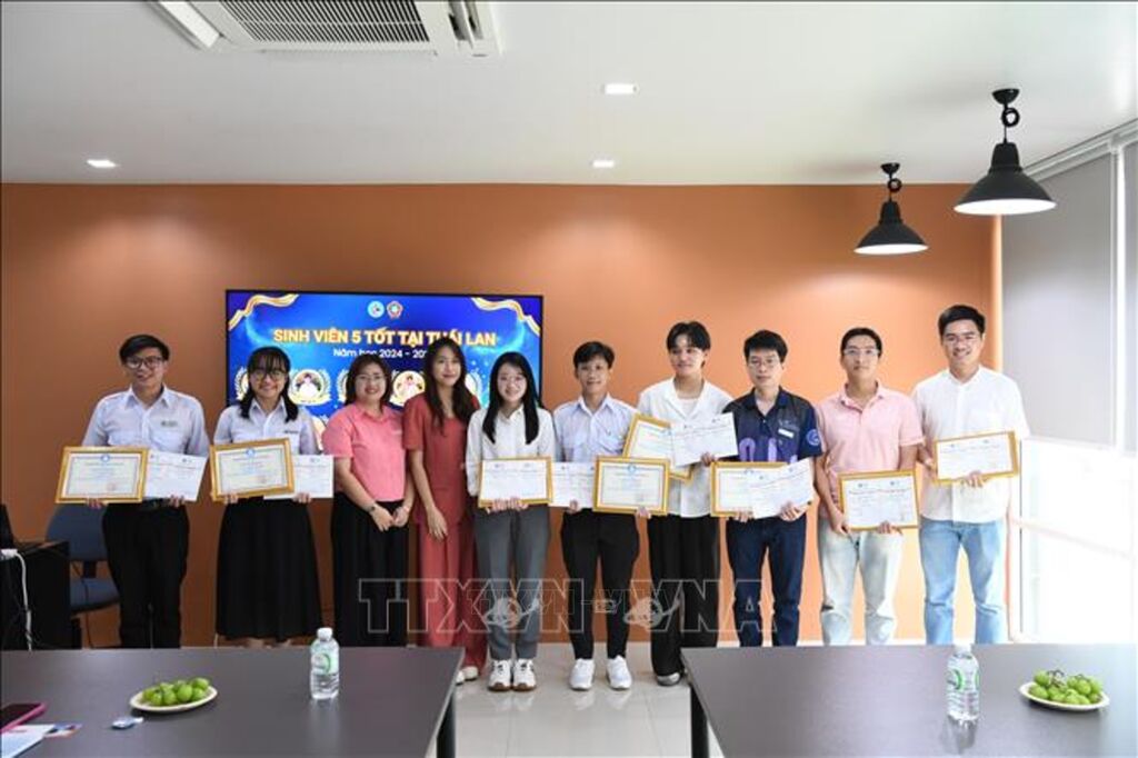 Tại buổi lễ, thay mặt Đại sứ quán Việt Nam tại Thái Lan, đồng chí Bí thư thứ nhất Nguyễn Thị Thanh Nhàn đã trao Giấy khen của Hội Sinh viên Việt Nam tại Thái Lan tặng 12 cá nhân đạt danh hiệu “Sinh viên 5 tốt” năm học 2024-2025.