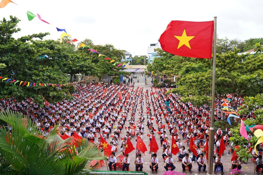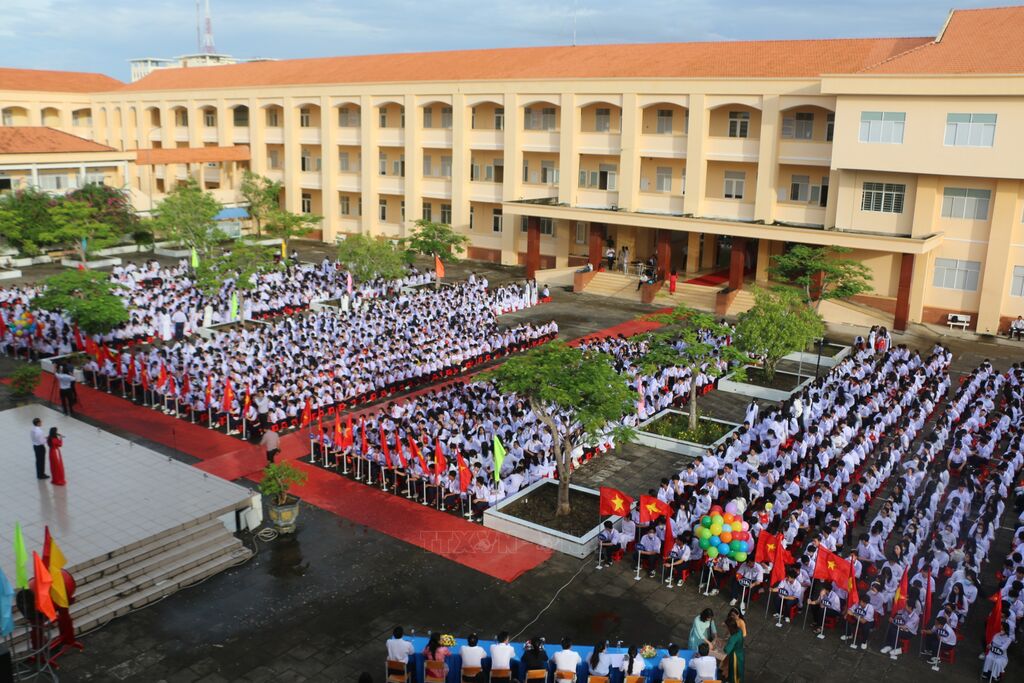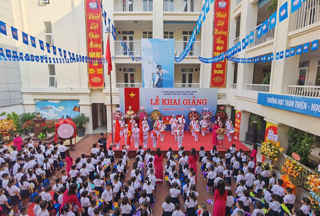 Học sinh lớp 1 Trường Tiểu học Thăng Long (quận Hoàn Kiếm, Hà Nội) trong Ngày khai giảng năm học mới. Ảnh: Thanh Tùng - TTXVNNăm học 2024-2025, tỉnh Kon Tum có 170.965 học sinh đến trường ở tất cả các cấp, trong đó có 102.045 học sinh là người dân tộc thiểu số. Ảnh: Khoa Chương - TTXVNHọc sinh Trường Phổ thông DTNT THPT huyện Nậm Pồ xếp hình bản đồ Việt Nam tại Lễ khai giảng. Ảnh: Xuân Tư - TTXVNLễ khai giảng tại trường Tiểu học Cao Văn Ngọc, huyện Côn Đảo, tỉnh Bà Rịa-Vũng Tàu. Ảnh: TTXVN phátNét rạng rỡ của cô và trò trường Phổ thông Dân tộc nội trú Trung học cơ sở và Trung học phổ thông Huyện Đà Bắc tỉnh Hòa Bình trong ngày khai giảng năm học mới. Ảnh: Trọng Đạt-TTXVNBuổi học đầu tiên sau lễ khai giảng ở một trường học trên huyện đảo Trường Sa, tỉnh Khánh Hoà. Ảnh: TTXVN phátHọc sinh ở thị trấn Trường Sa cùng bố mẹ đến trường dự lễ khai giảng năm học mới 2024 -2025. Ảnh: TTXVN phátNghi thức truyền thống thả chim bồ câu trong ngày khai giảng năm học mới tại Trường THPT Việt Đức, quận Hoàn Kiếm, Hà Nội. Ảnh: Tuấn Anh-TTXVNKhông khí tưng bừng trong ngày khai giảng năm học mới 2024 - 2025 tại Trường Tiểu học Thăng Long (quận Hoàn Kiếm, Hà Nội). Ảnh: Thanh Tùng - TTXVNHọc sinh Trường THCS Giảng Võ tại lễ khai giảng năm học mới 2024 – 2025. Ảnh: Văn Điệp – TTXVNHọc sinh Trường Phổ thông DTNT THPT huyện Nậm Pồ (tỉnh Điện Biên) trong trang phục màu cờ Tổ quốc rạng rỡ bước vào năm học mới. Ảnh: Xuân Tư - TTXVNLễ khai giảng tại trường THPT Việt Trì (Phú Thọ). Năm học 2024-2025, Phú Thọ đón hơn 397.000 học sinh các cấp. Ảnh: Tạ Toàn - TTXVNLễ khai giảng năm học mới tại trường THPT Bạc Liêu (tỉnh Bạc Liêu). Ảnh: Tuấn Kiệt – TTXVN.Học sinh trường THCS An Tức (huyện Tri Tôn, tỉnh An Giang) dự lễ khai giảng năm học mới. Ảnh: Công Mạo-TTXVNCô giáo và học sinh lớp 1 trường Tiểu học Thăng Long (quận Hoàn Kiếm, Hà Nội) nô nức trong ngày "Toàn dân đưa trẻ tới trường". Ảnh: Thanh Tùng - TTXVN