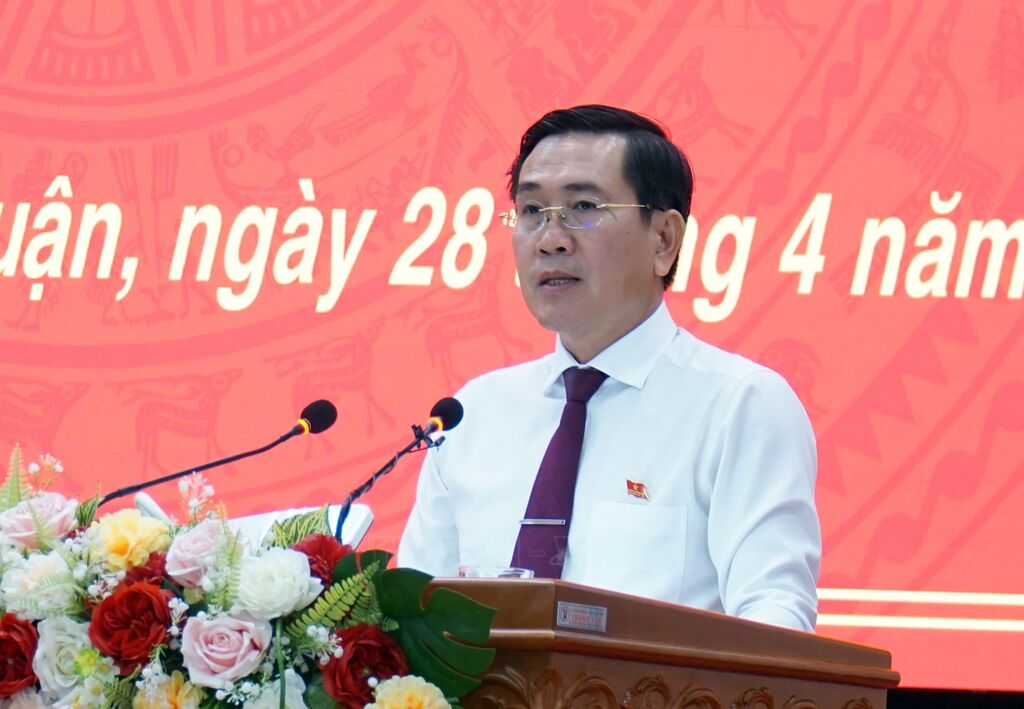 | Ông Phạm Văn Hậu, Chủ tịch HĐND tỉnh Ninh Thuận phát biểu tại kỳ họp. |
