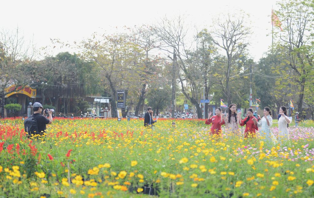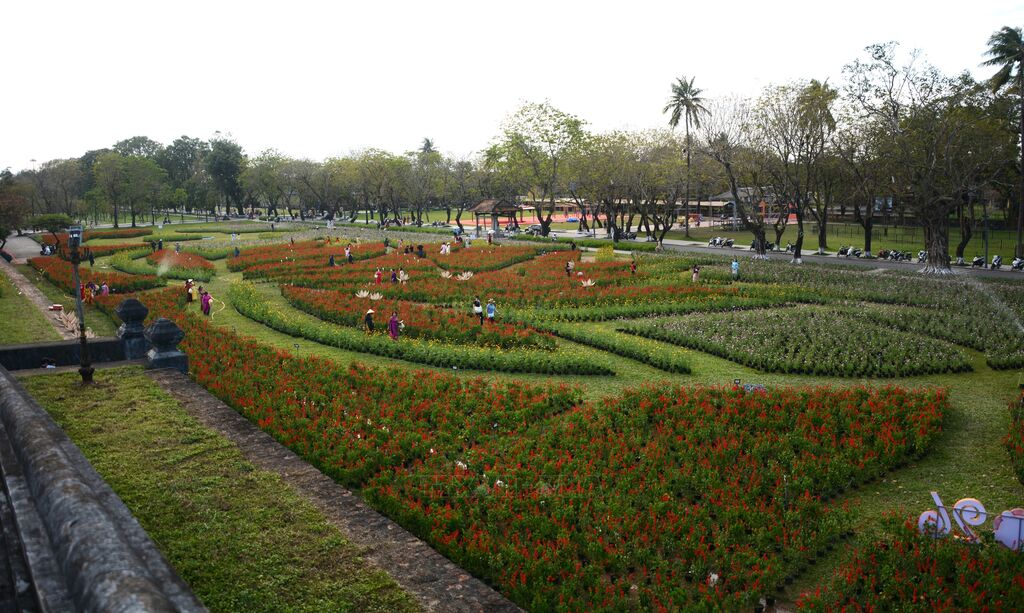 Những ngày giáp Tết Nguyên đán 2026, thành phố Huế đã trang trí hơn 50.000 chậu hoa, xếp thành đóa hoa sen khổng lồ tại khu vực sân Hàm Nghi – cổng Thượng Tứ (phường Phú Xuân). Giữa không gian di sản trầm mặc của cố đô, những chậu hoa bung nở rực rỡ, thu hút đông đảo người dân đến thưởng lãm và chụp hình. Ảnh: Văn Dũng-TTXVN